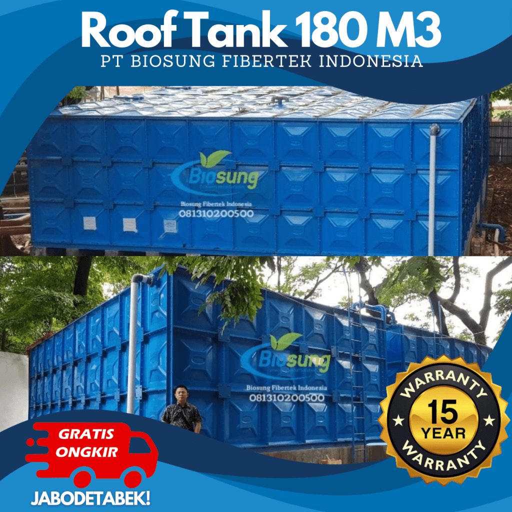 Tangki Panel memiliki fungsi untuk menampung air kapasitas banyak. Berbahan Fibreglass yang bermutu dan tebal membuat Tangki Panel Biosung Tahan Cuaca apapun, Anti Karat, Sangat Kuat, Design nya pun modern. Jika anda butuh Tangki Air ukuran besar bisa hubungi kami. Siap mengerjakan sesuai kebutuhan anda (Custom).