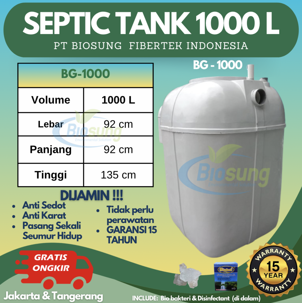 Kami melayani semua pengiriman ke seluruh Indonesia. Berpengalaman lebih dari 26 Tahun, Kami memberikan pelayanan yang nyaman dan terbaik untuk semua pelanggan Biosung. Setiap Produk yang dibeli kami Garansi 15 Tahun.